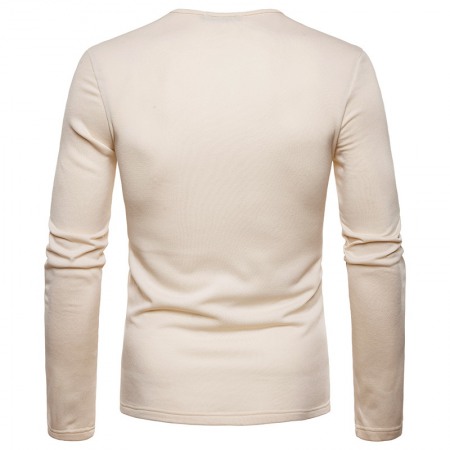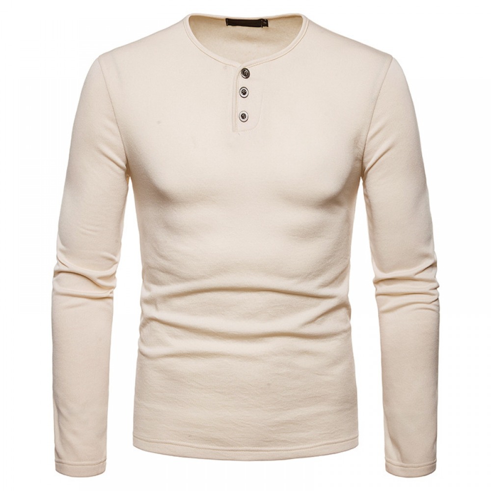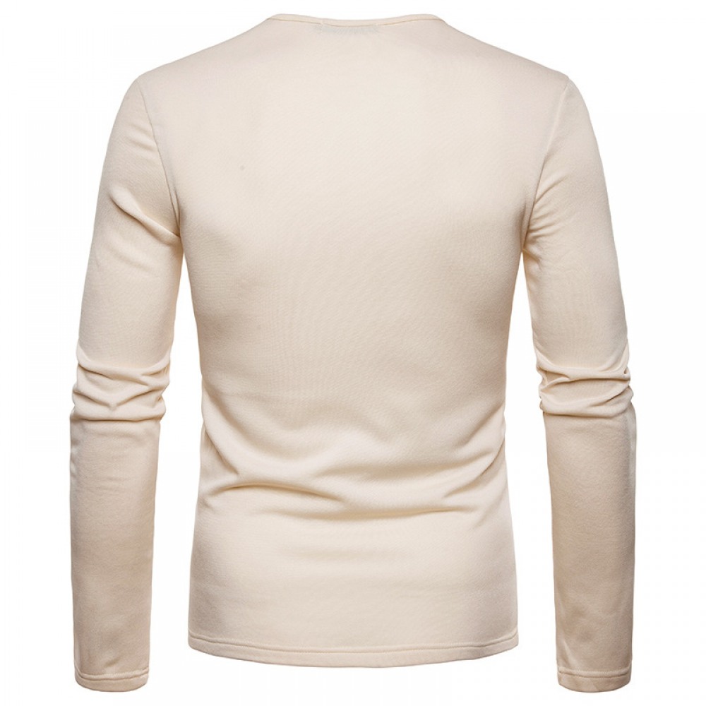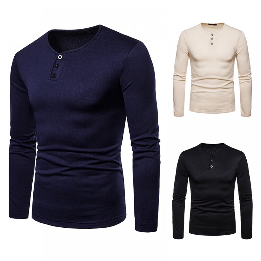 Men's Plus Size Plus Velvet Warm Henley Collar Long-Sleeved T-Shirt Bottoming Shirt