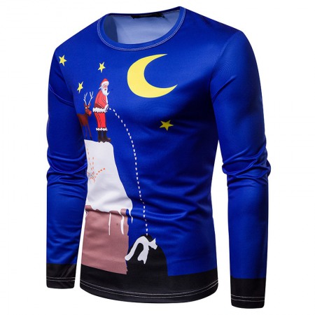New 3D Personality Printing Fashion Men's Christmas Santa Pattern Long-Sleeved T-Shirt