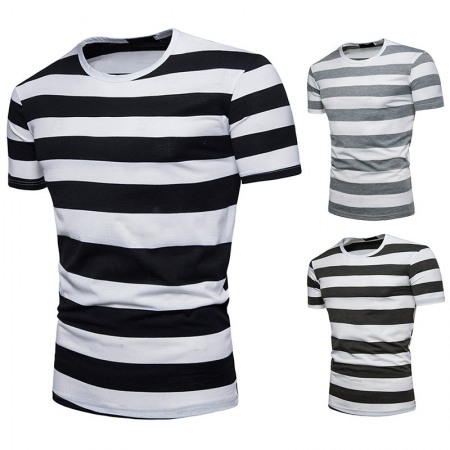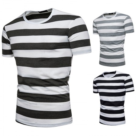 New Men's European Size Thick Striped Short-Sleeved T-Shirt
