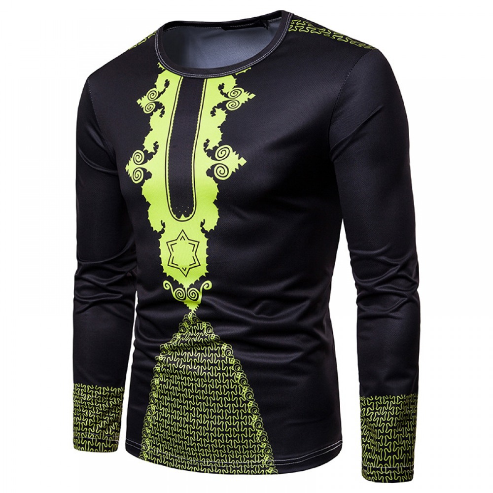 New Men's Fashion Totem 3D Digital Printing Round Neck Long Sleeve T-Shirt