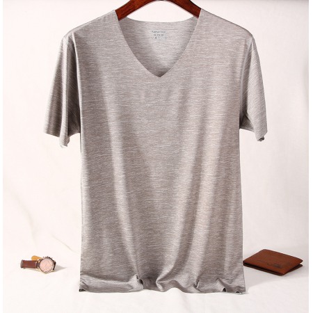 Pure Color V-Neck New Year Summer New Simple Seamless Ice Silk Men's Quick-Drying T-Shirt Short-Sleeved Men's T-Shirt