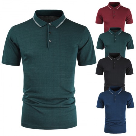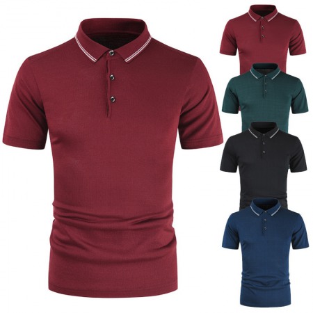 Summer New Style Short-Sleeved Fashion Color Matching Pile Collar Men's Casual T-Shirt